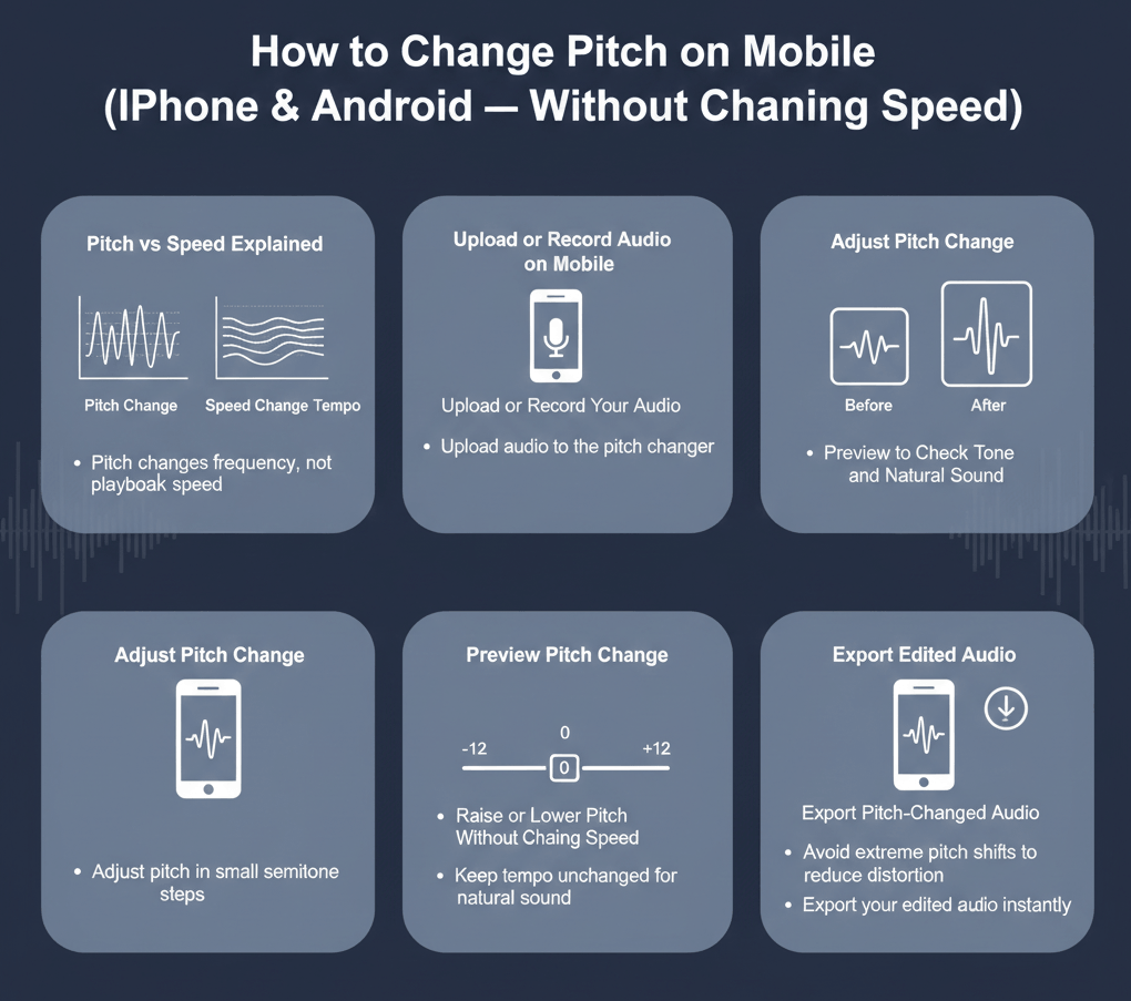 This guide explains how to change pitch on mobile correctly, what tools work best on iPhone and Android, how many semitones to change, and how to avoid common quality problems.